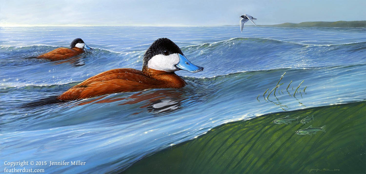 Species: Ruddy Duck drakes, Black Tern, Emerald Shiners, Swaying Bullrush.