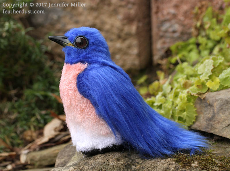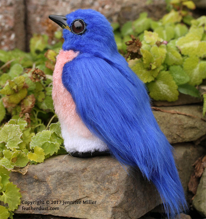 This soft sculpture has been completely hand crafted using epoxy, glass eyes, a wire armature, foam, and faux fur (no real fur used!), paint, ink, and glue. Because epoxy was used instead of clay or other materials, this sculpture is extremely solid and it would take great acts of violence to break or chip it (please do not enact great acts of violence on this fuzzy bird). That said, the paint can still be scratched, so be kind.