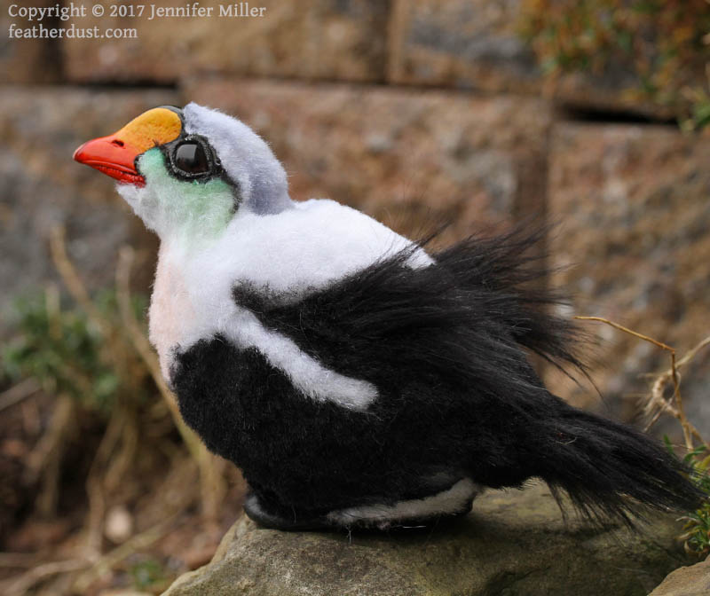 No casting or molds are used and this is a 100% one of a kind sculpture. Each little bird is completely hand sculpted with lots of time and love! Any other birds of this species I make will be unique! Also note that all screens display colors a bit differently, and the actual bird might vary slightly in person, depending on your display. This small hand-made item may have slight imperfections and makers marks. You may notice a subtle seam or a tiny bit of glue here and there. If small imperfections are troublesome to you, please reconsider your purchase. These birds are soft-ish, with a hard and solid core. They are nice to pet, but perhaps not to hug-- not to mention too small to hug! This should be considered a sculpture, and not a true plush.