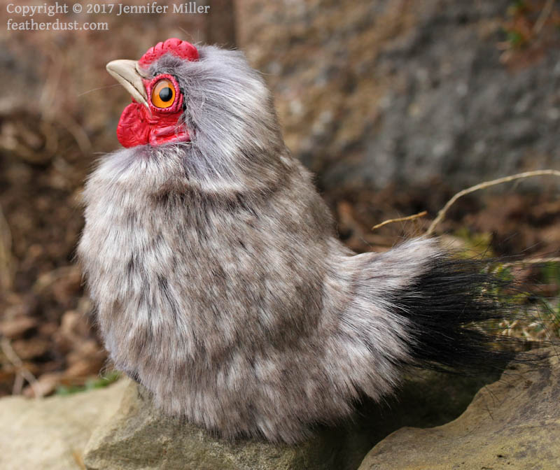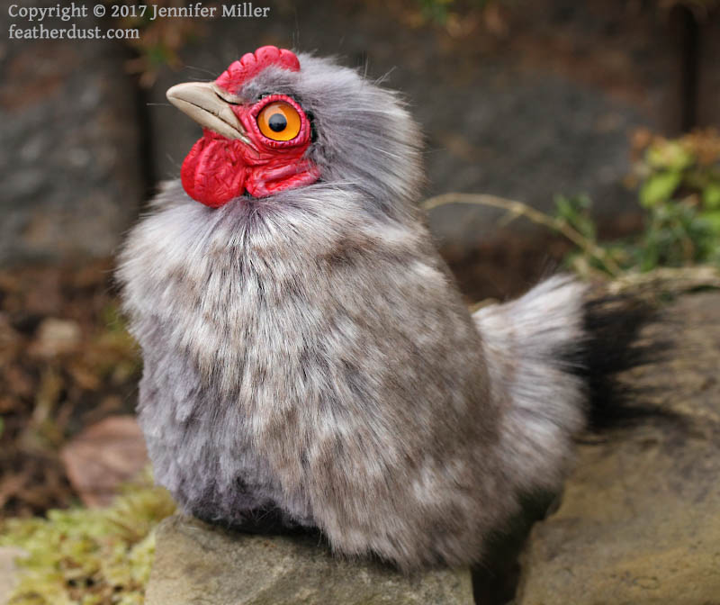 This soft sculpture has been completely hand crafted using epoxy, glass eyes, a wire armature, foam, and faux fur (no real fur used!), paint, ink, and glue. Because epoxy was used instead of clay or other materials, this sculpture is extremely solid and it would take great acts of violence to break or chip it (please do not enact great acts of violence on this fuzzy bird). That said, the paint can still be scratched, so be kind.