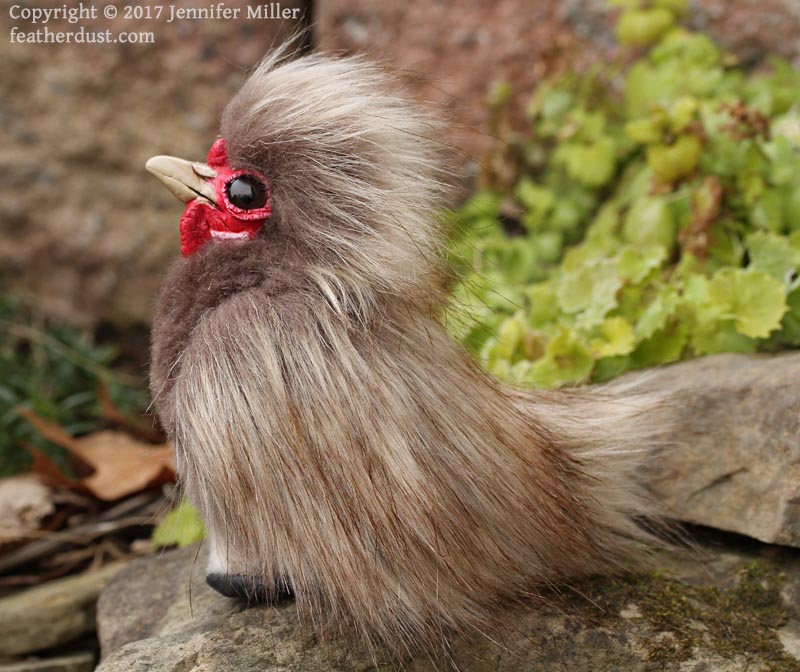The inks used to color parts of the fur are untested, long-term. This means there is a chance it can fade if exposed to direct light or strong ambient light. For this reason I recommend not displaying this bird near a window, so that it doesn't fade! Also, as parts of this bird are crafted with glue, it's important never to store this fuzzy creature somewhere hot (such as in a car), or it might come apart.