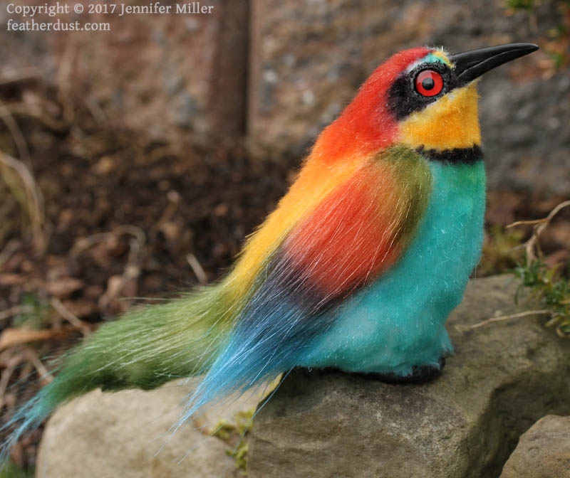 The alcohol inks used to color parts of the fur are untested, long-term. This means there is a chance it can fade if exposed to direct light or strong ambient light. For this reason I recommend not displaying this bird near a window, so that it doesn't fade! Also, as parts of this bird are crafted with glue, it's important never to store this fuzzy creature somewhere hot (such as in a car), or it might come apart.