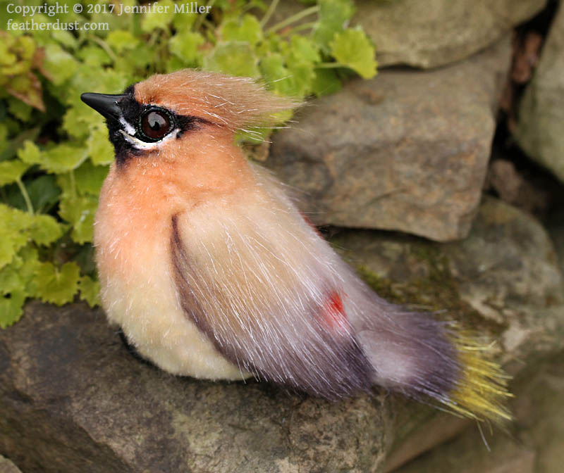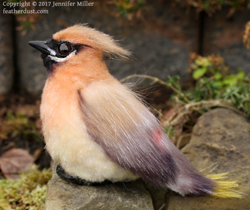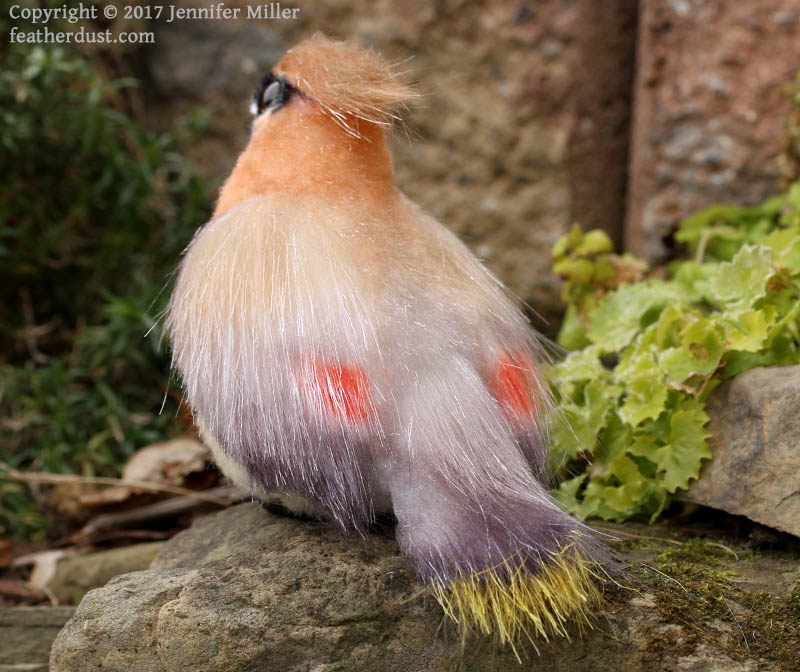 The alcohol inks used to color parts of the fur are untested, long-term. This means there is a chance it can fade if exposed to direct light or strong ambient light. For this reason I recommend not displaying this bird near a window, so that it doesn't fade! Also, as parts of this bird are crafted with glue, it's important never to store this fuzzy creature somewhere hot (such as in a car), or it might come apart.