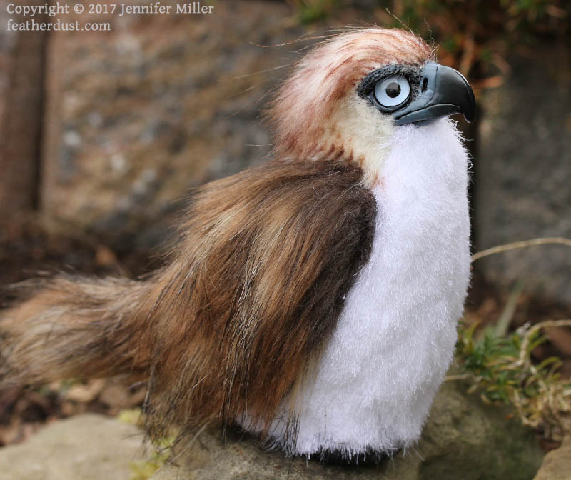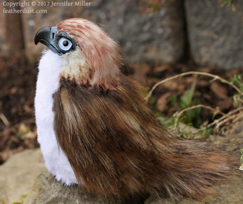 This soft sculpture has been completely hand crafted using epoxy, glass eyes, a wire armature, foam, and faux fur (no real fur used!), paint, ink, and glue. Because epoxy was used instead of clay or other materials, this sculpture is extremely solid and it would take great acts of violence to break or chip it (please do not enact great acts of violence on this fuzzy bird). That said, the paint can still be scratched, so be kind.
