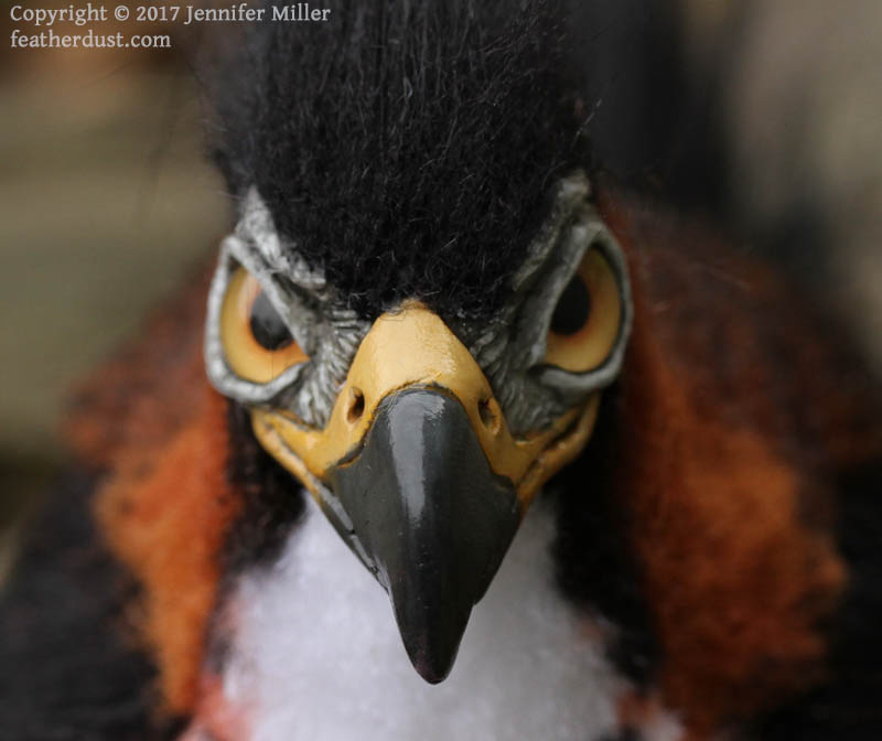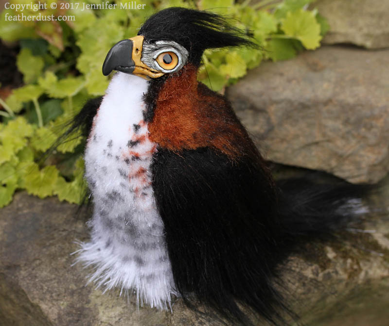 This soft sculpture has been completely hand crafted using epoxy, glass eyes, a wire armature, foam, and faux fur (no real fur used!), paint, ink, and glue. Because epoxy was used instead of clay or other materials, this sculpture is extremely solid and it would take great acts of violence to break or chip it (please do not enact great acts of violence on this fuzzy bird). That said, the paint can still be scratched, so be kind.