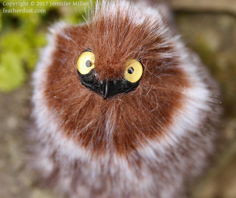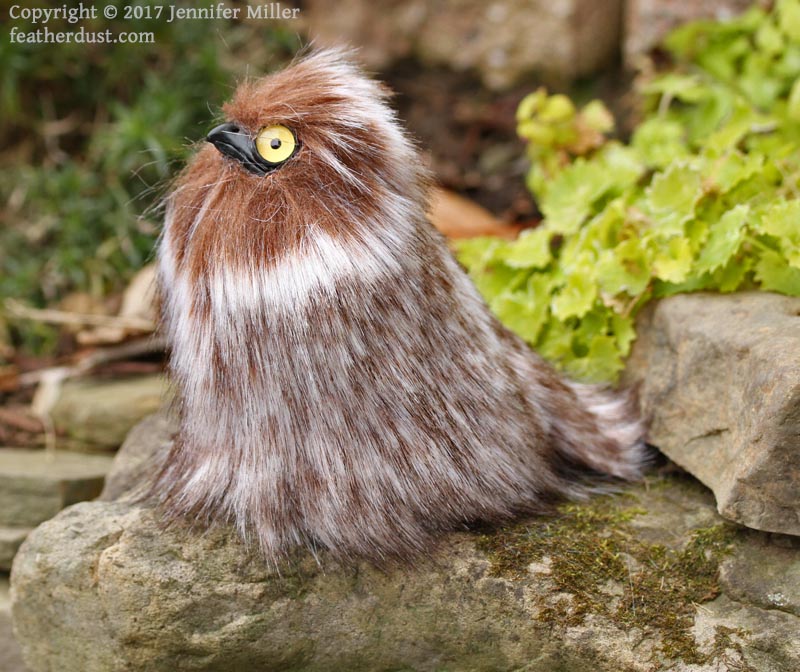 This soft sculpture has been completely hand crafted using epoxy, glass eyes, a wire armature, foam, and faux fur (no real fur used!), paint, ink, and glue. Because epoxy was used instead of clay or other materials, this sculpture is extremely solid and it would take great acts of violence to break or chip it (please do not enact great acts of violence on this fuzzy bird). That said, the paint can still be scratched, so be kind.