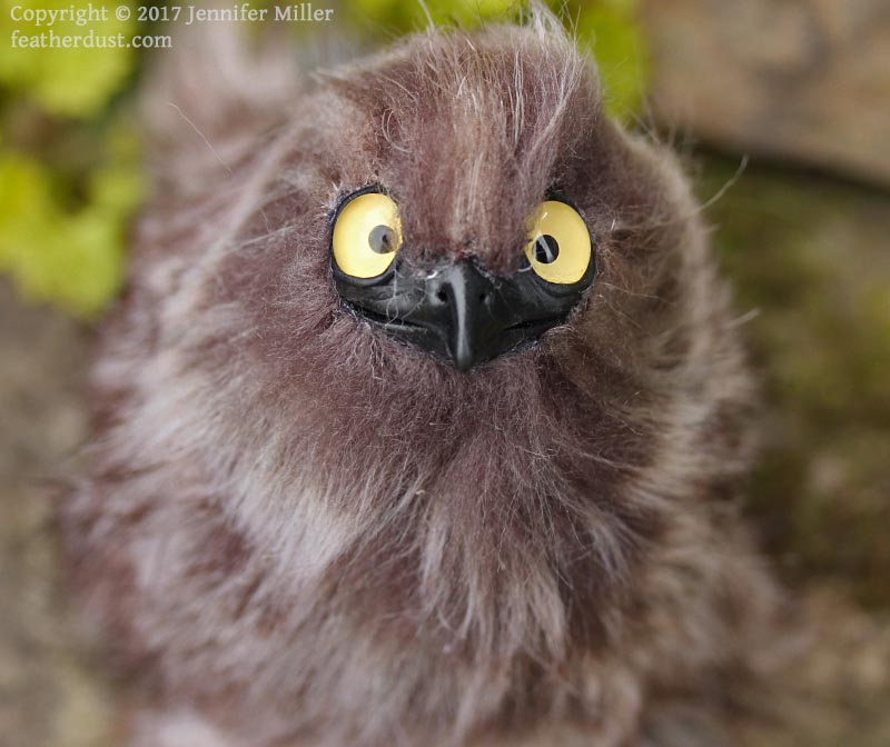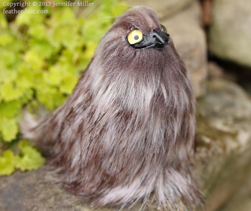 This soft sculpture has been completely hand crafted using epoxy, glass eyes, a wire armature, foam, and faux fur (no real fur used!), paint, ink, and glue. Because epoxy was used instead of clay or other materials, this sculpture is extremely solid and it would take great acts of violence to break or chip it (please do not enact great acts of violence on this fuzzy bird). That said, the paint can still be scratched, so be kind.