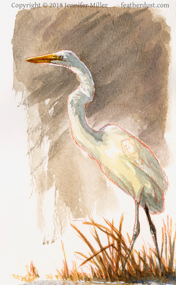 Materials: Artist's watercolors, red colored pencil, white gel pen, 140lb cold pressed acid-free archival watercolor paper.