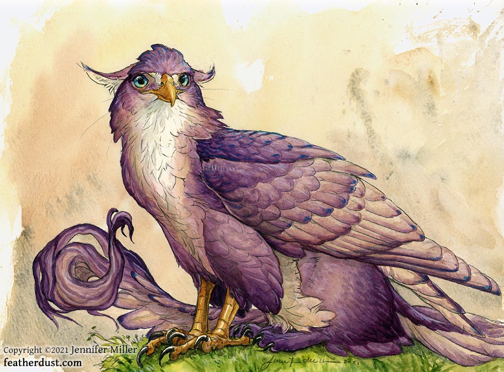 "Purple Gryphon" Colored Pencil & Watercolor Painting