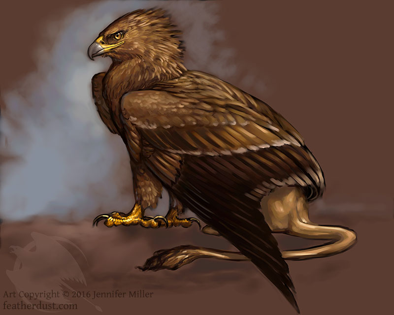This open edition photo print (a reproduction) was printed from the digital painting "Zakhin", of a sketchy brown gryphon.